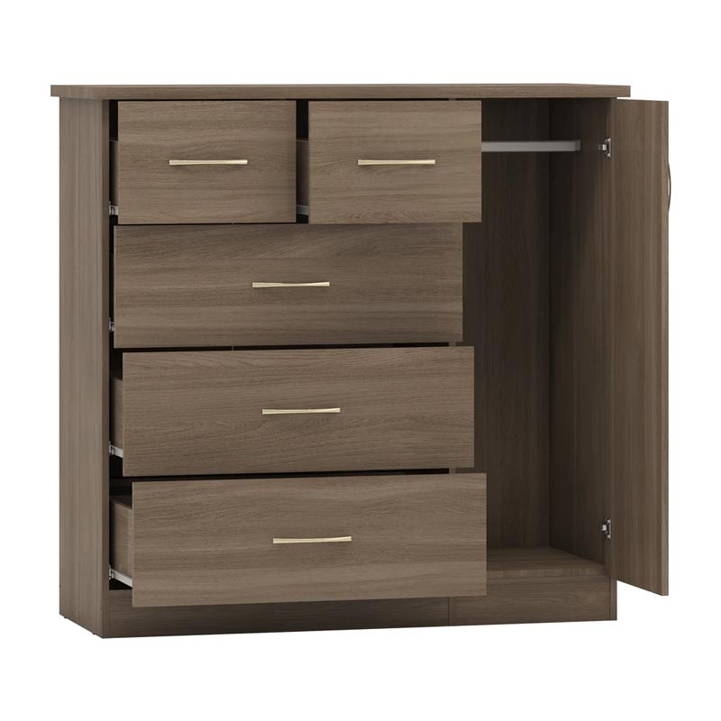 The TN Interiors Compact Wardrobe with 5 Drawers is a stylish and functional storage solution designed for small spaces. This versatile wardrobe features a combination of hanging space and five spacious drawers, providing ample storage for clothes, shoes, and accessories. Its sleek design and high-quality construction make it a perfect fit for bedrooms, guest rooms, or even entryways, helping you maintain a clutter-free environment without compromising on style.