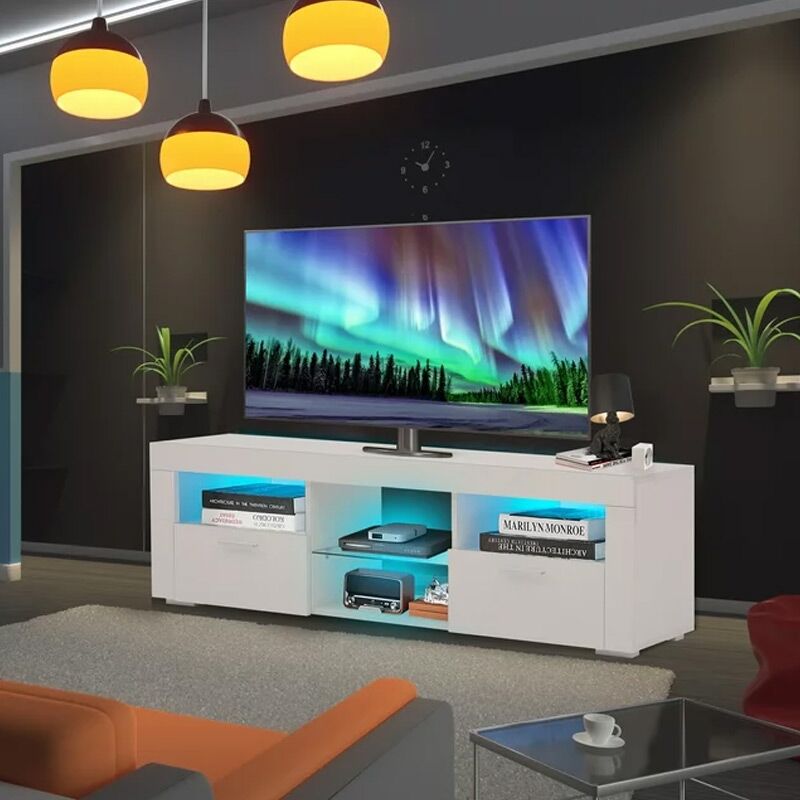 • Open Storage Shelves: Multiple open shelves allow easy access and display of media players, gaming consoles, books, and decorative items.