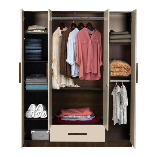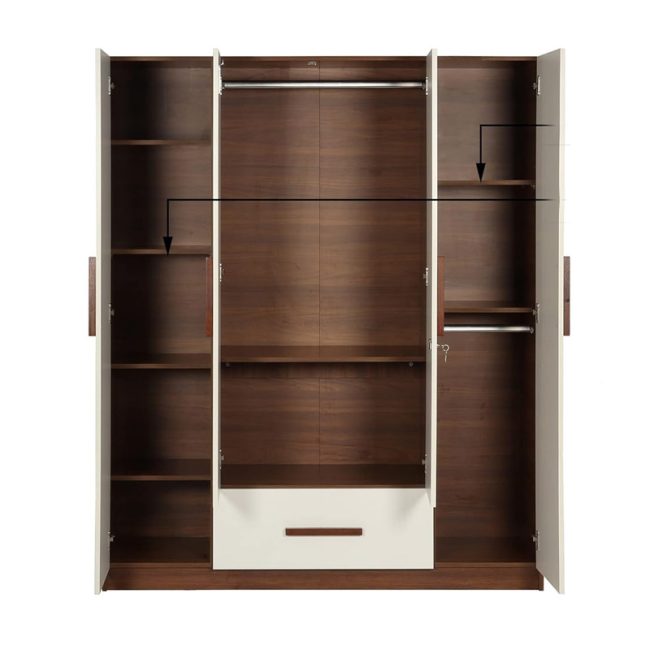- Elegant Design: Features a modern aesthetic with four doors and a full-length mirror.