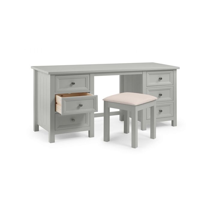 The spacious dressing table features ample storage space to keep your cosmetics, accessories, and personal items neatly organized, while the matching stool offers comfort and support. Whether you’re preparing for a busy day or unwinding at the end of a long one, the TN Interiors Maine Wooden Dressing Table and Stool offer the perfect balance of beauty and practicality.