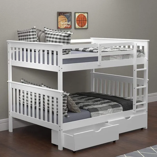 Home Bedroom Furniture Bunk Beds Mission White Bunk Bed with Dual Underbed Drawers