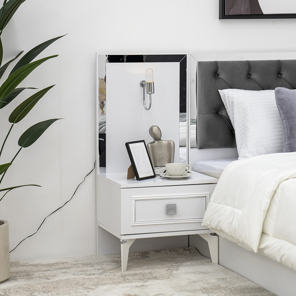 Enhance your bedroom with the sleek and stylish TN Interiors Rio Bedroom Set in a chic white and grey finish. This contemporary set brings a clean, modern look to your space, blending functionality with sophistication. Crafted from durable, high-quality materials, the TN Interiors Rio Bedroom Set ensures both comfort and resilience, making it a perfect fit for today’s lifestyle. Complete with a stylish bed frame and matching nightstands, this set provides a cohesive, elegant look for your bedroom.