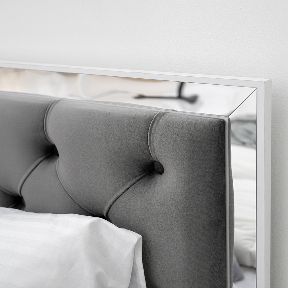 Add a touch of sophistication and functionality to your bedroom with the Kaydian Appleby Pendle Slate Ottoman Bed Frame. Upholstered