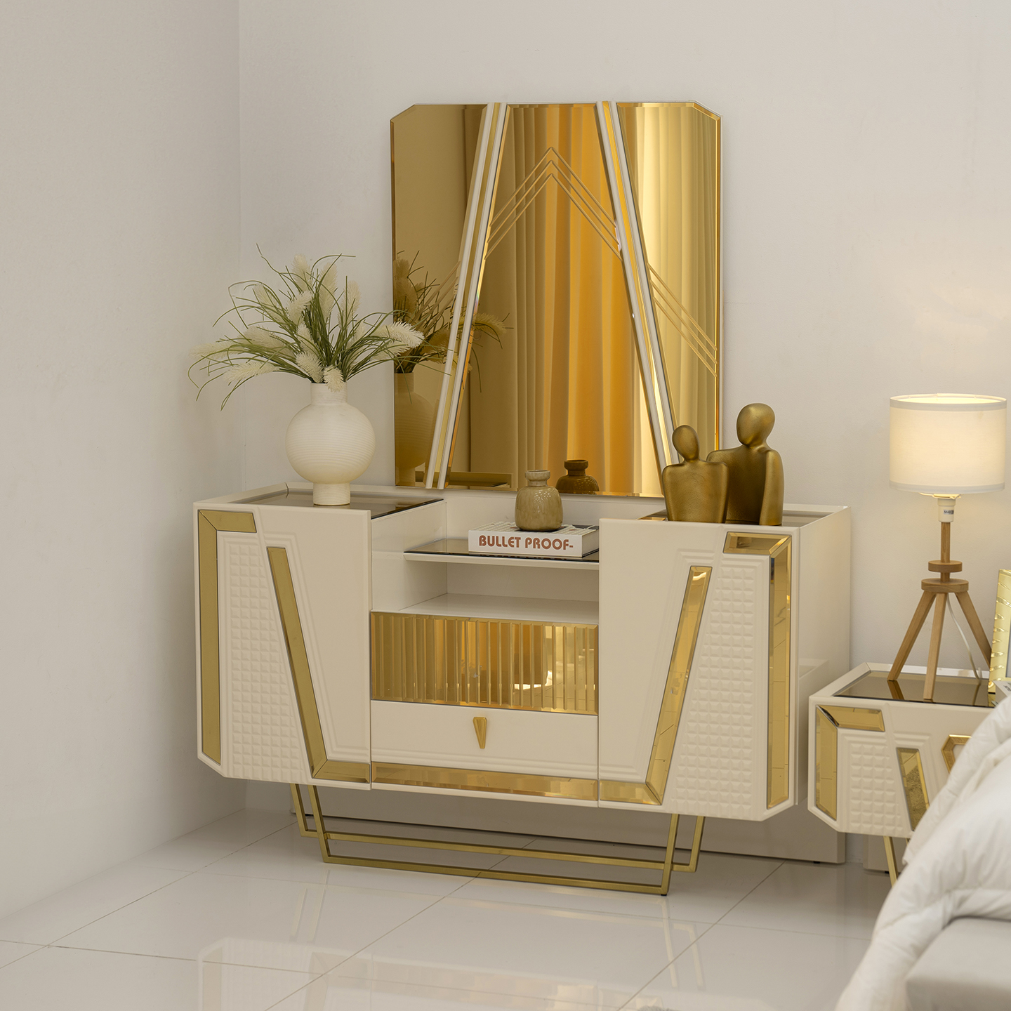 Elevate your bedroom with the TN Interiors Vera Bedroom Set, designed to bring elegance and modern charm to your space. This stunning collection features a timeless design with soft curves and refined detailing, making it a perfect addition to any contemporary home. Crafted from high-quality materials, the Vera Bedroom Set offers both durability and comfort, ensuring a relaxing retreat. The set includes a beautifully designed bed and coordinating nightstands, providing a cohesive look that enhances your bedroom decor.