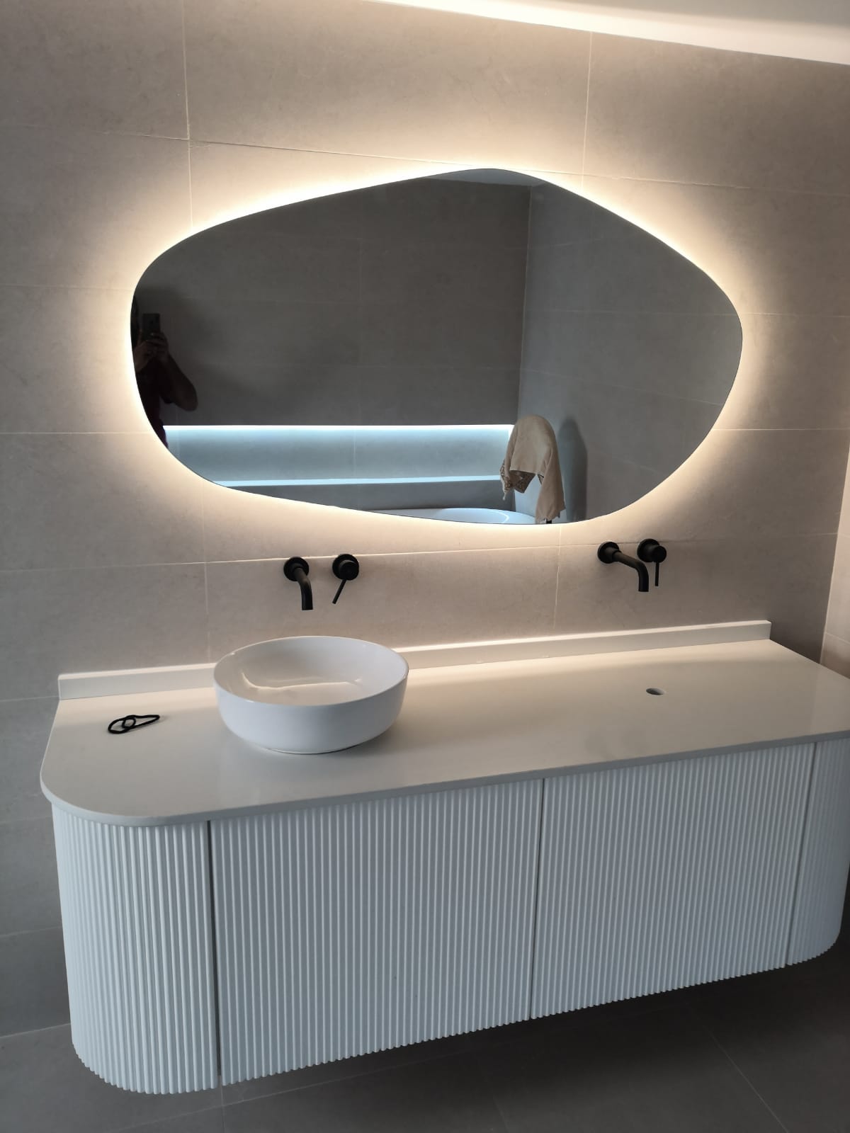 Features a unique frame inspired by the gentle curves and shapes found in natural pond settings, adding a touch of nature inspired elegance. - High-Quality Reflective Surface